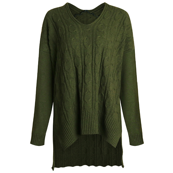 Solid color style,finished with long sleeve,v-neck,high-low hem and a loose silhouette,this wonderful piece