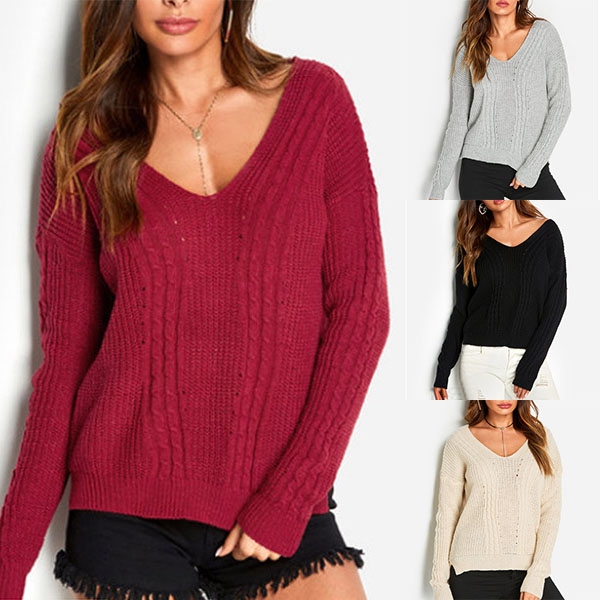 long sleeve,v-neck and a high-low hem,this sweater not only can keep you warm,but also can offer