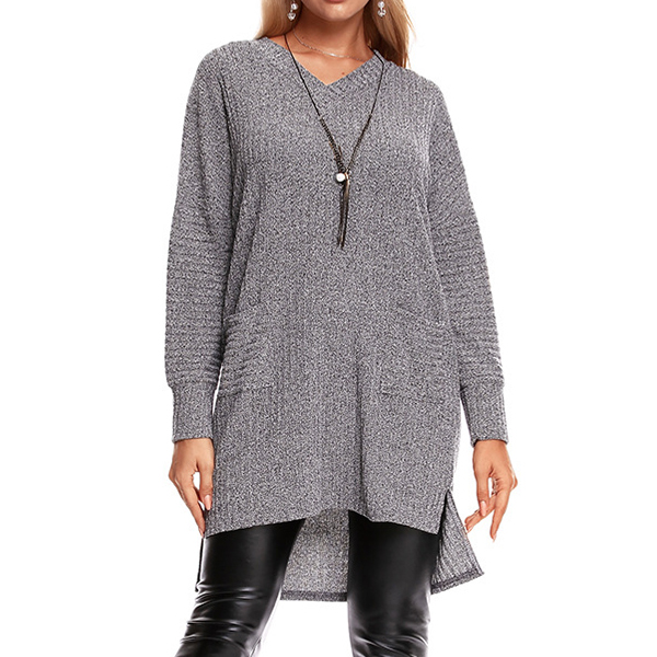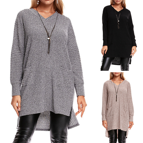 It boasts a solid color,outfitted with long sleeve,v-neck and a high-low hem,this wonderful piece can keep you cozy,