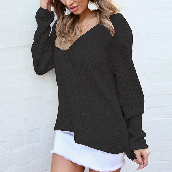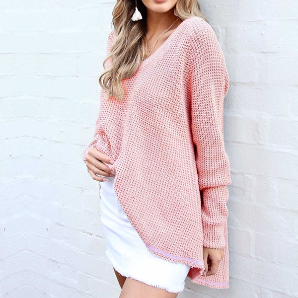 finished with long sleeve,v-neck and a high-low hem design,chic yet stylish. Simply matching with a tight