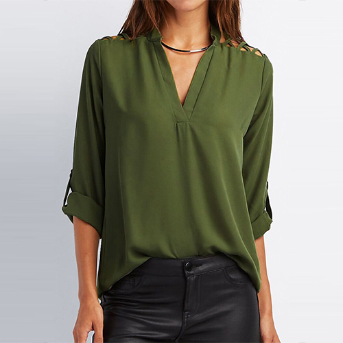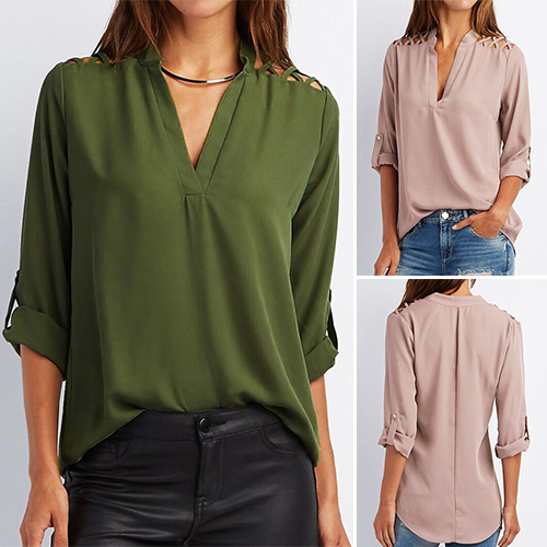 v-neck and a relaxed-fit silhouette,this blouse can give you a cozy yet stylish look. Shoulder part with hollow