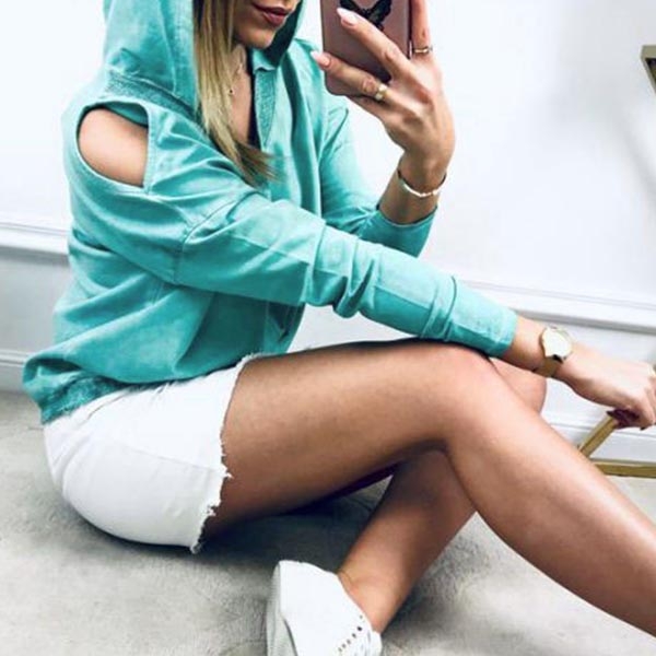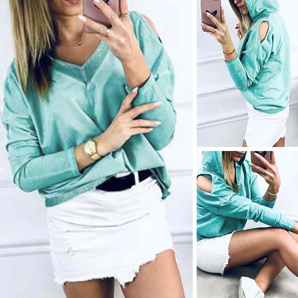 with long sleeve,v-neck,hooded silhouette and hollow out design,chic yet stylish. Its soft and breathable