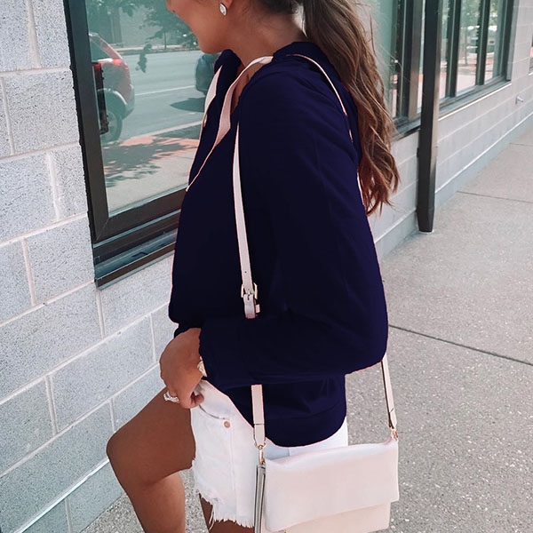 Fashion Solid Color Long Sleeve V-neck Shirt