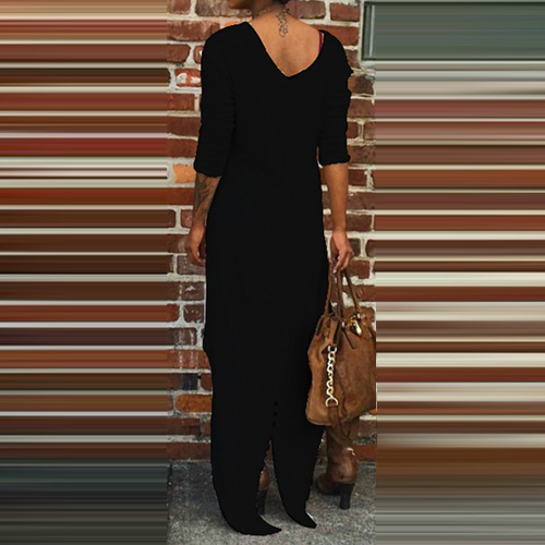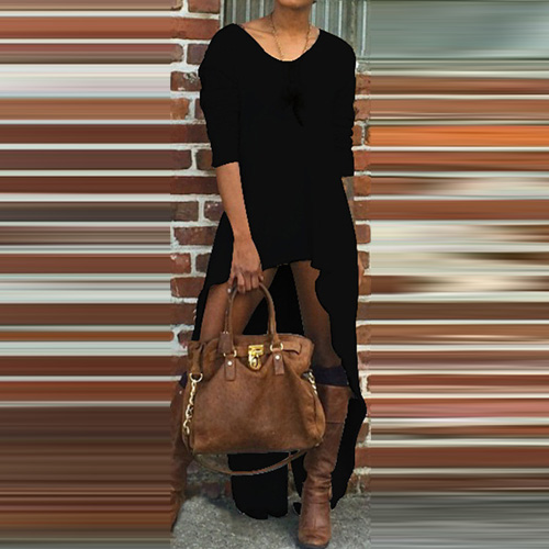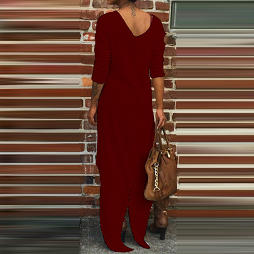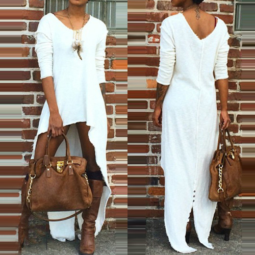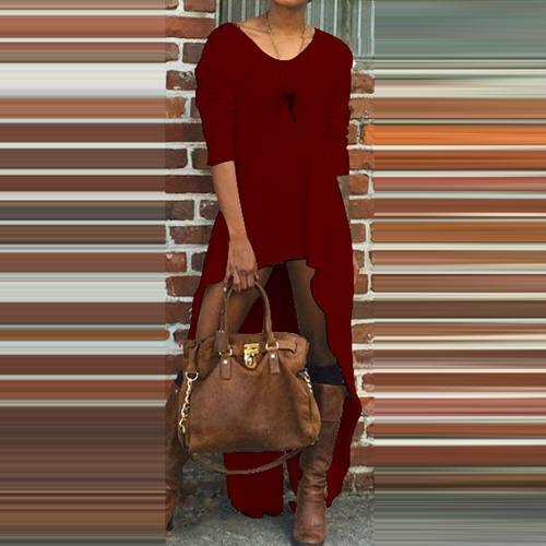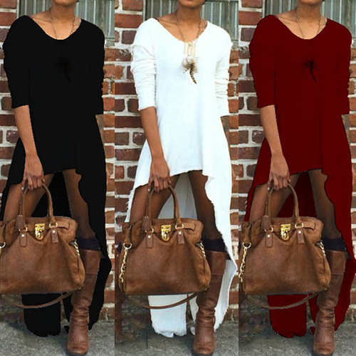 Solid color style,with long sleeve,v-neckline and irregular hem design,this dress is perfect