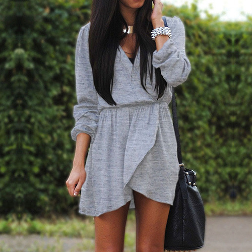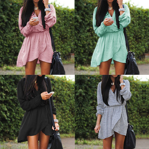 Strolling on the street with this dress in some sunny days. Solid color style,with long sleeve,v-neck,elastic