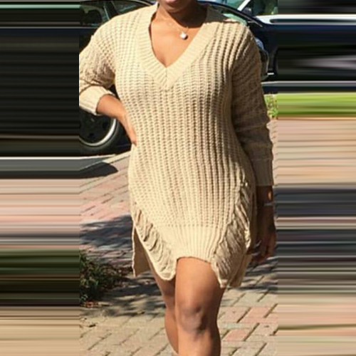 Easy to gain a chic look via this knit dress. It features solid color style,with long sleeve,