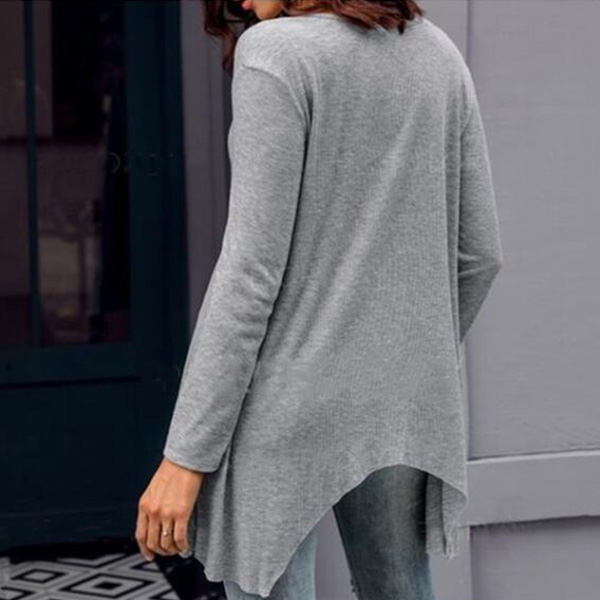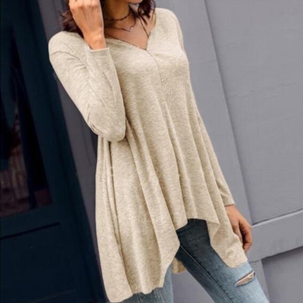long sleeve,v-neck and an irregular hem,chic yet stylish. Simply matching with your tight pants for a