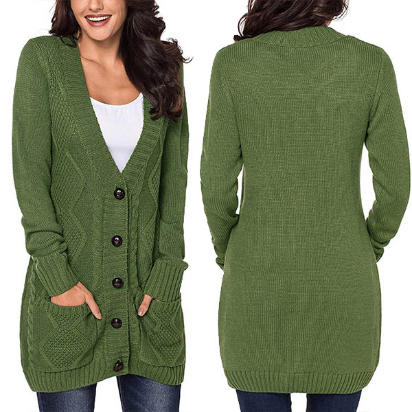 finished with long sleeve,v-neck,single-breasted and a clean silhouette,this cardigan is your perfect