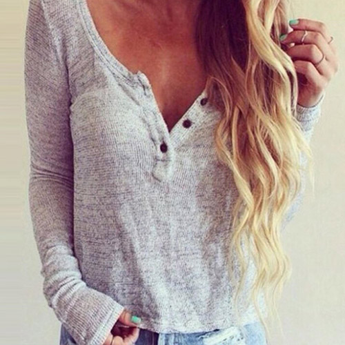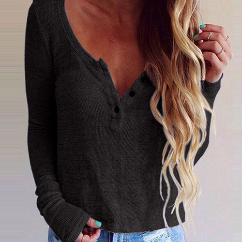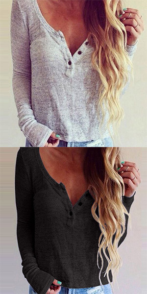 Solid color style,with long sleeve,v-neck and a relaxed silhouette. Adding a stunning necklace