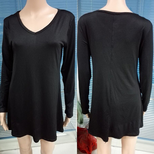 its loose silhouette. Solid color style,with long sleeve and v-neckline. Paired with your