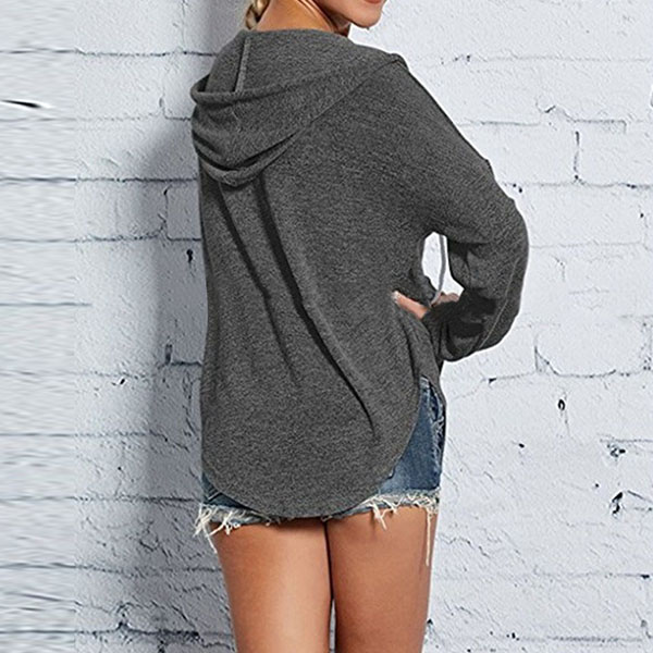 Enjoy a casual and relaxed style in this hoodie! It boasts a solid color,finished with long sleeve,v-neck,cozy