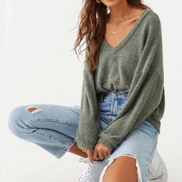 v-neck and a loose silhouette,this piece can keep you warm and comfy while it maintains the
