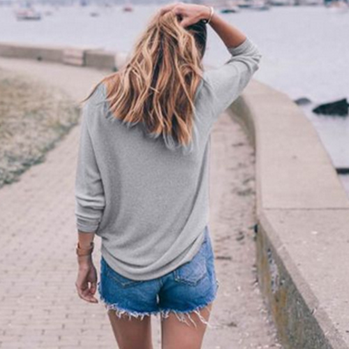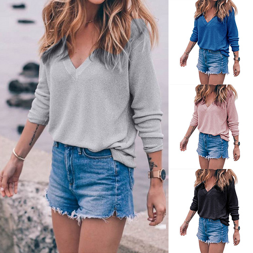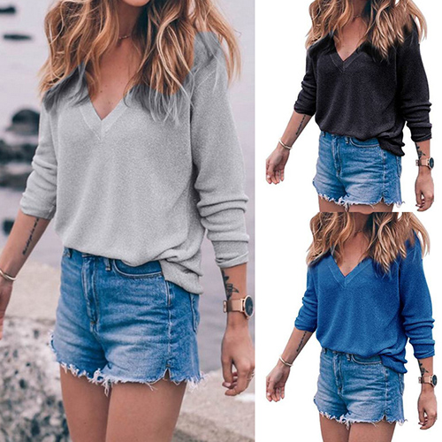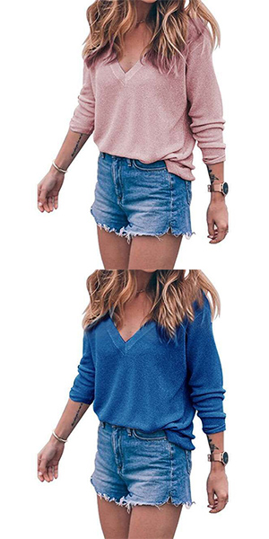 with long sleeve and v-neckline,simple and classic. And its cozy knitted fabric with loose silhouette can