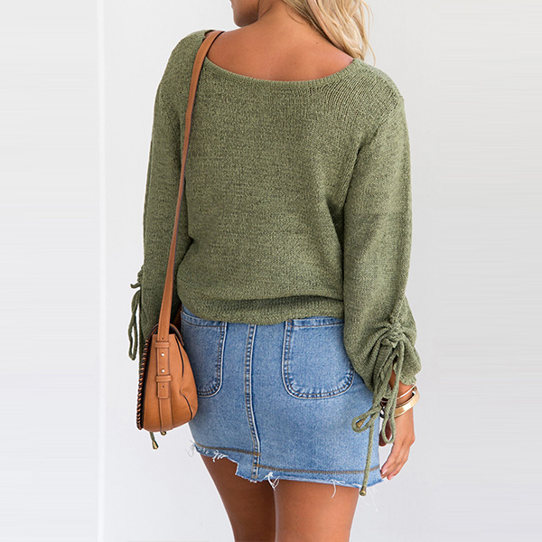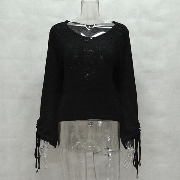 finished with long sleeve,v-neck and a loose silhouette,simple,classic and stylish. Sleeve part with drawstring design