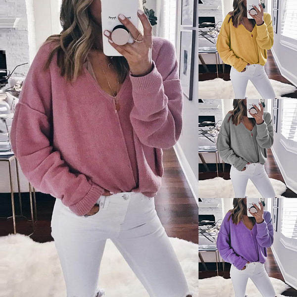 with long sleeve,v-neck and a loose silhouette,simple in design but filled with cozy and stylish flavor.