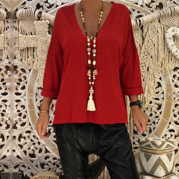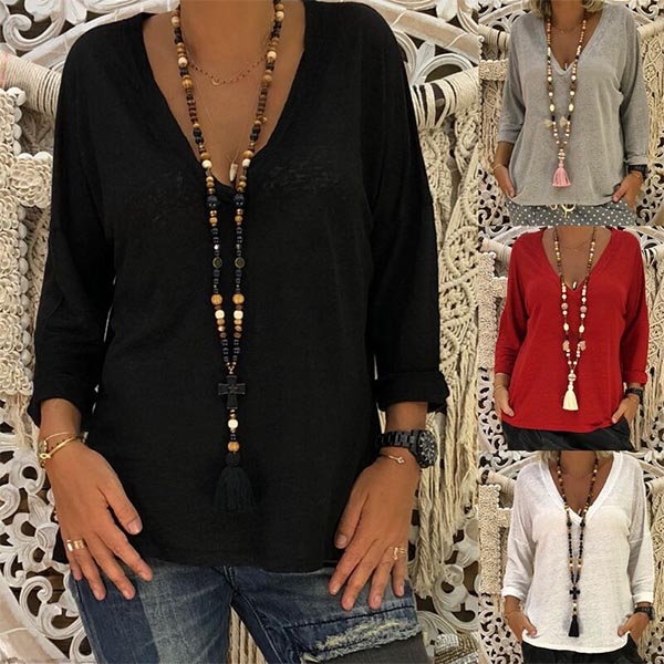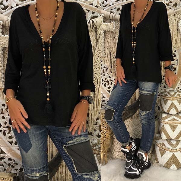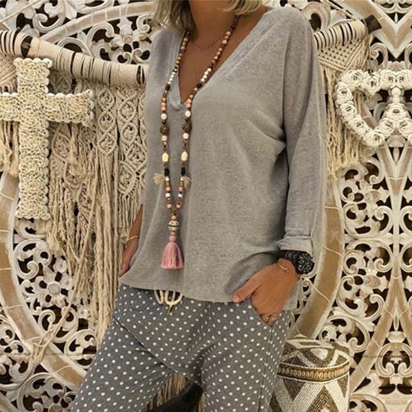 v-neck and a loose silhouette,which is a perfect combination of simple,casual,cozy and