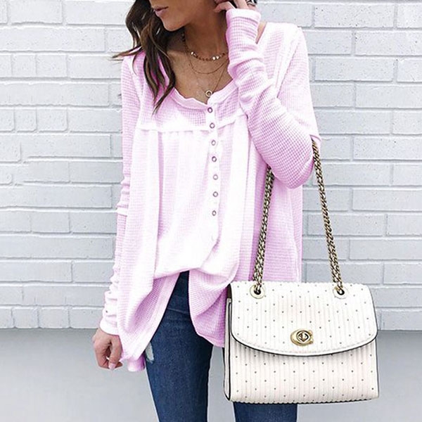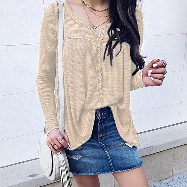 This t-shirt is crafted from soft and breathable fabric,with long sleeve,v-neck and a loose silhouette design,