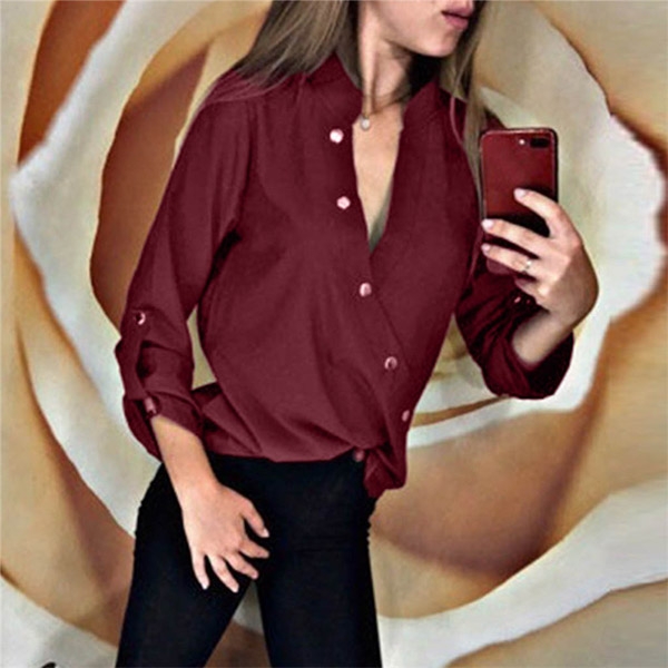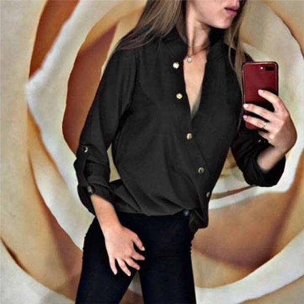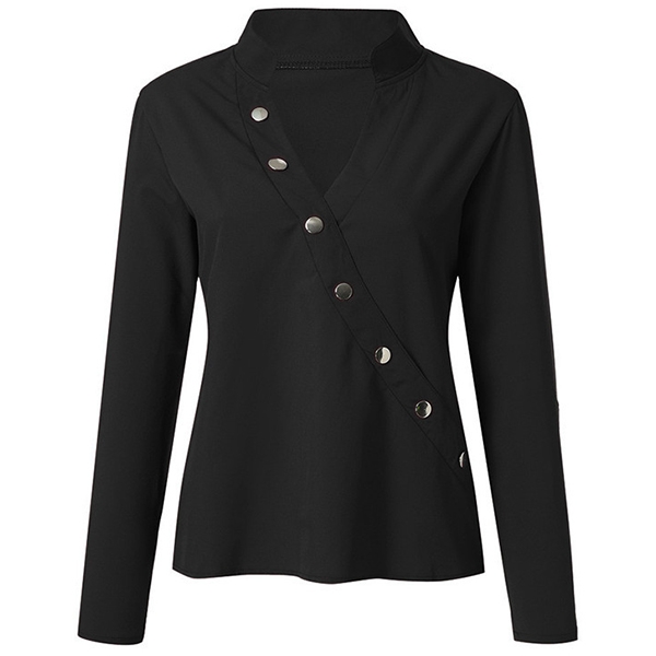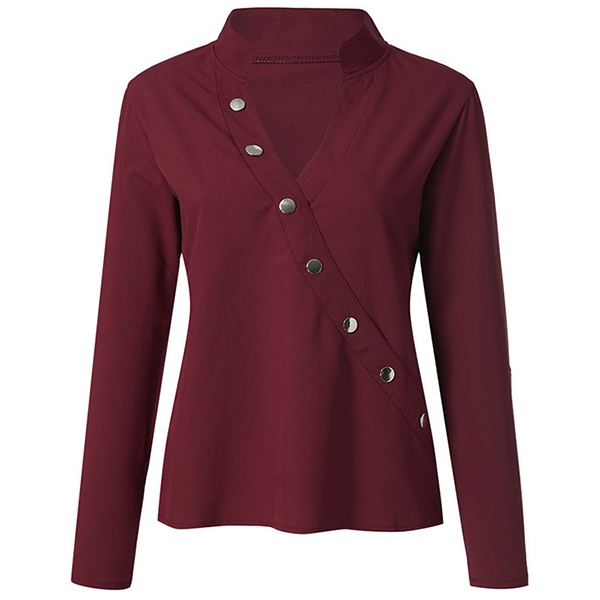 solid color,accompanied with long sleeve,v-neck and oblique buttons design,this blouse can offer you an