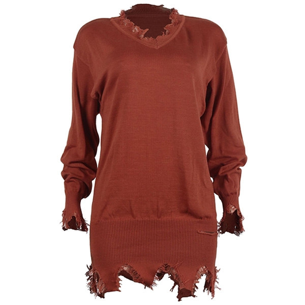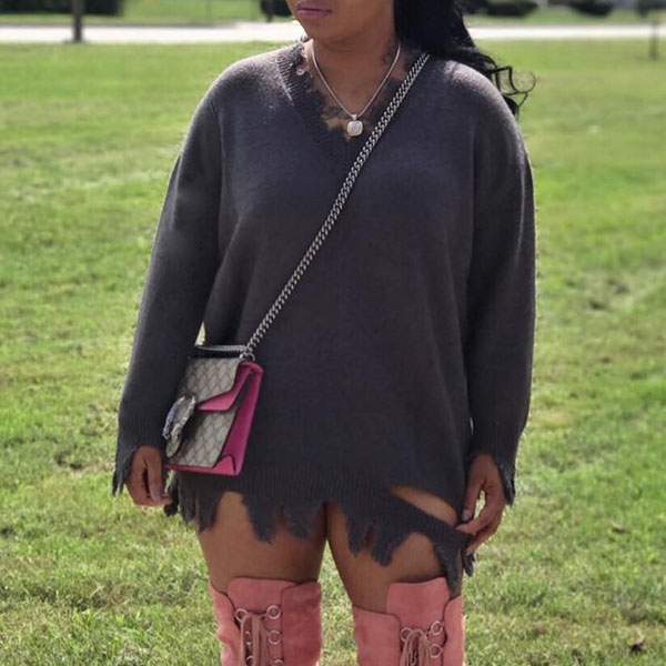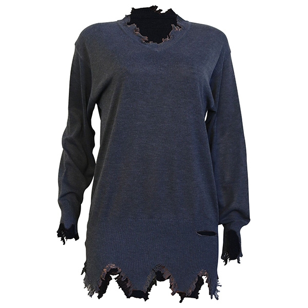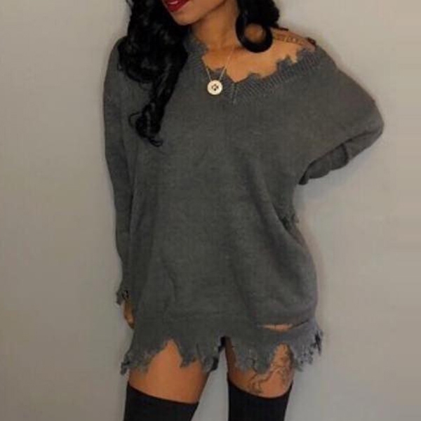 cozy knitted fabric can give you a comfortable day. And the ripped details will make this piece look