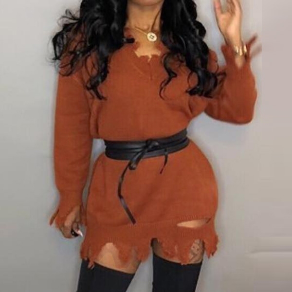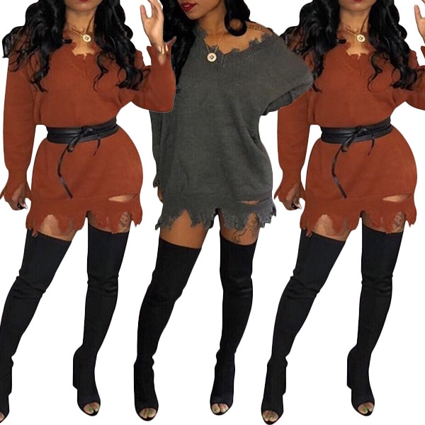 This sweater dress comes with a solid color,finished with long sleeve and v-neck design,the soft and