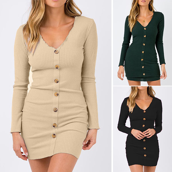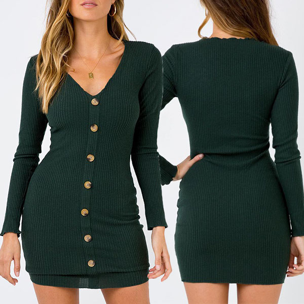 Finished with long sleeve,v-neck and a fit silhouette,this dress can demonstrate your sexy and seductive curve.