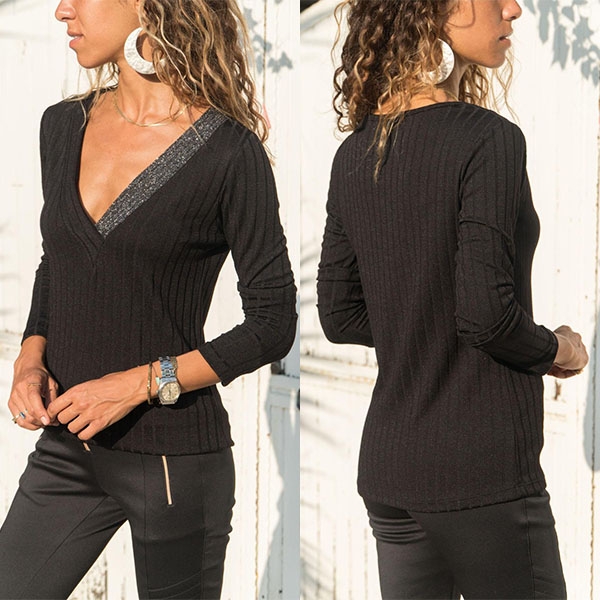 outfitted with long sleeve,v-neck and a fit silhouette,this t-shirt can promise you an all--day