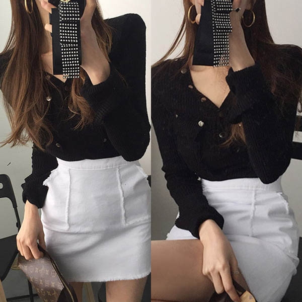 The chest patch pockets design will further enhance its charm. Try to match with a high waist skirt to