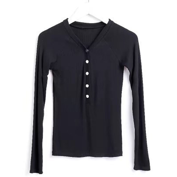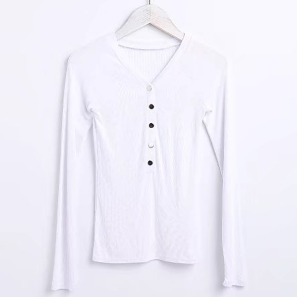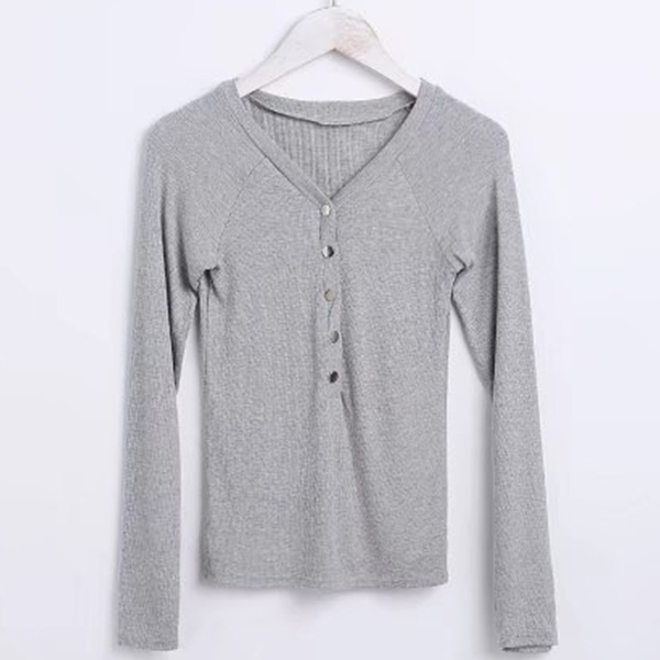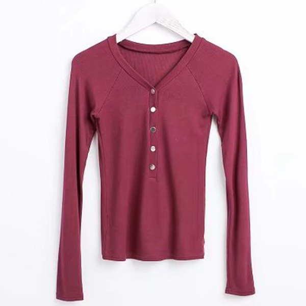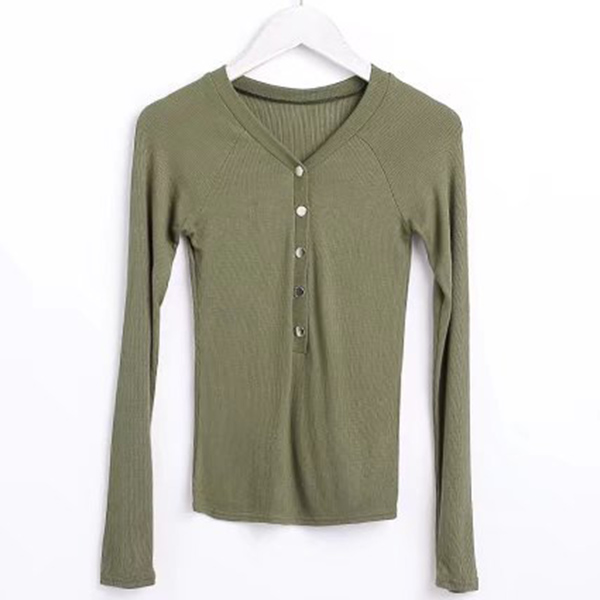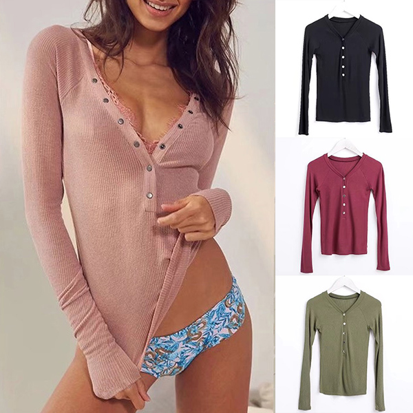 breathable fabric,with long sleeve,v-neck and a fit silhouette,this t-shirt definitely can give you a cozy yet feminine style.