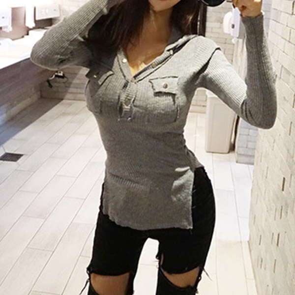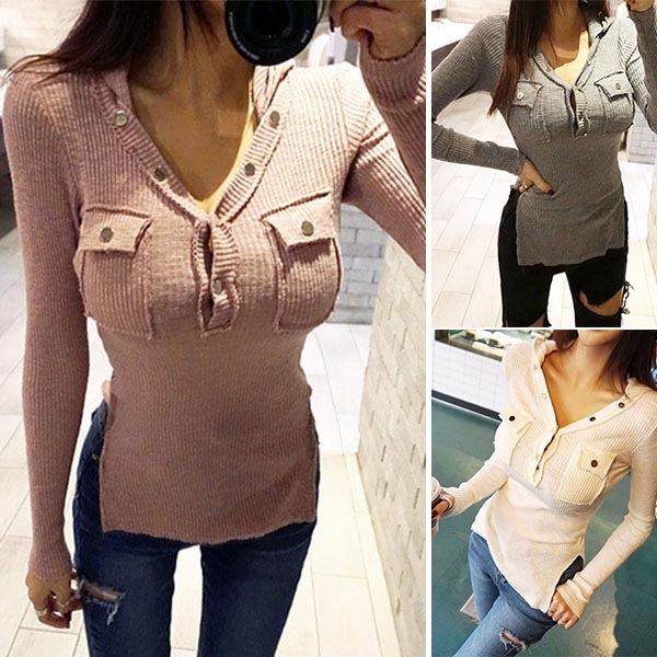 It comes with a solid color,the v-neck and slit hem design will make this piece look more attractive,