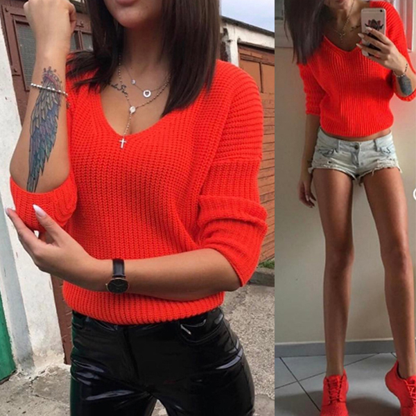 The bright color design will bring you a happier mood. Designed with long sleeve and v-neck,this sweater is a