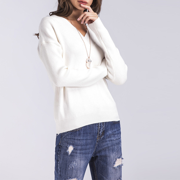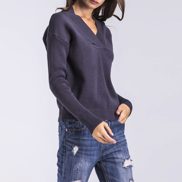 finished with long sleeve,v-neck and a clean silhouette,this sweater can be matched with shorts,skirts or