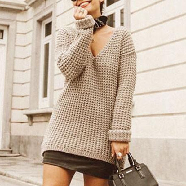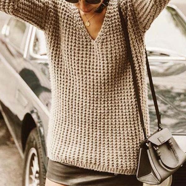 with long sleeve,v-neck and loose silhouette design,simple in design style,but this piece