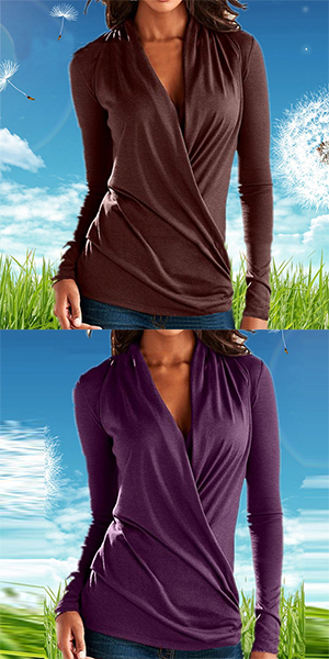 wardrobe staple. Solid color style,with long sleeve,v-neckline and comfortable fabric,