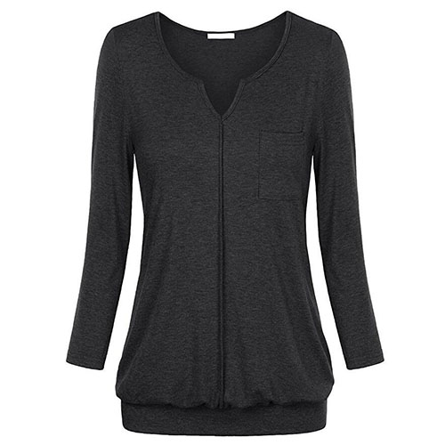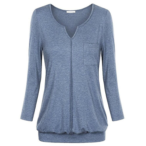 v-neck and a chest patch pocket,simple and classic. And its soft and breathable fabric can ensure you a comfortable day.
