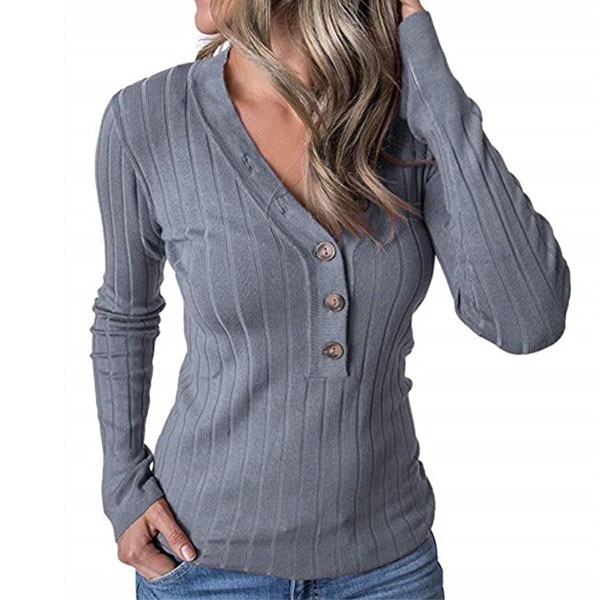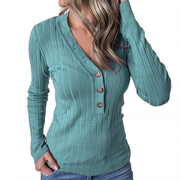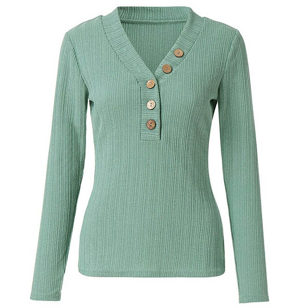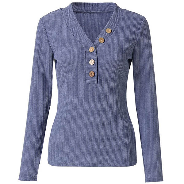 Finished with solid color,long sleeve,v-neck and buttons design at the neckline part,this t-shirt knows how