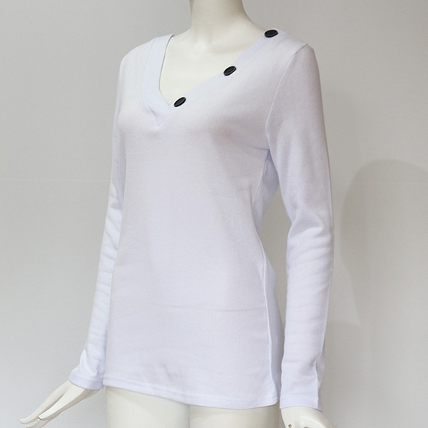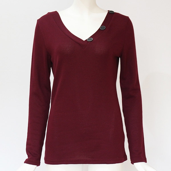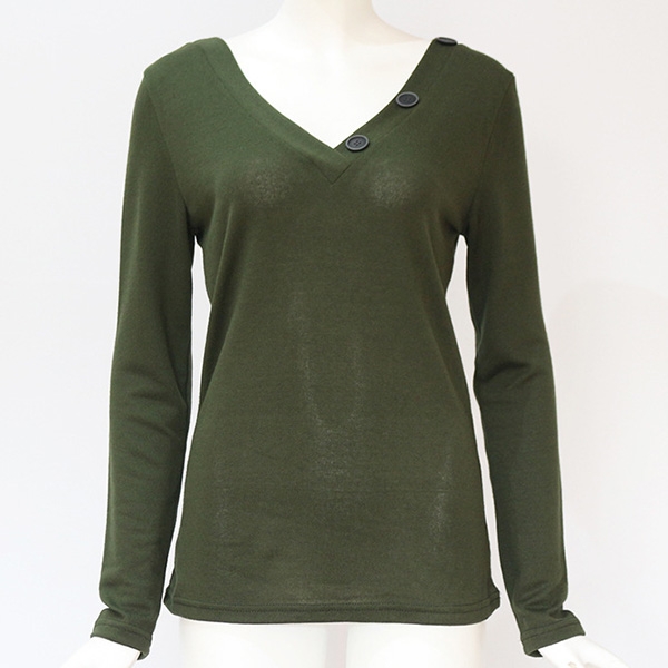 your wardrobe? Designed with solid color,long sleeve and v-neck design,the buttons details will make this