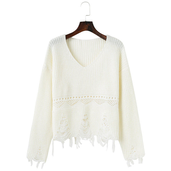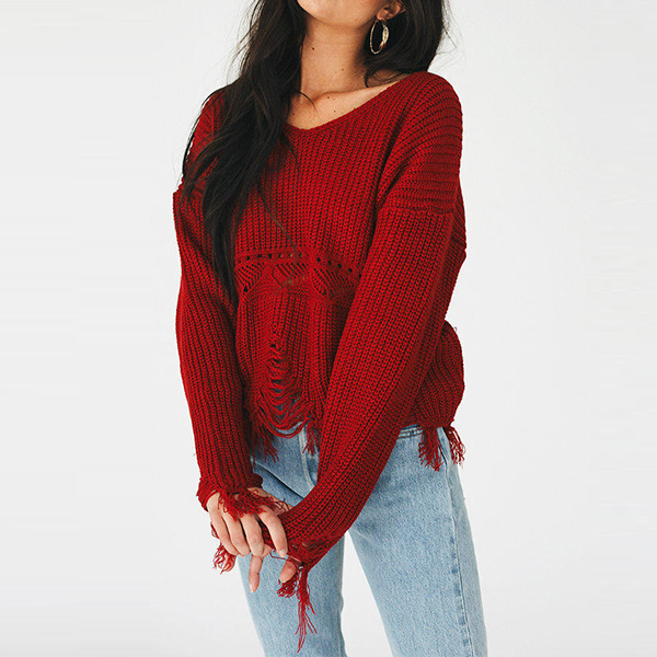 Greet the arrival of the autumn with this sweater. Solid color style,designed with long sleeve,v-neck,tassel hem and