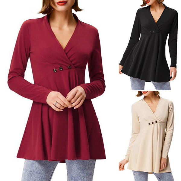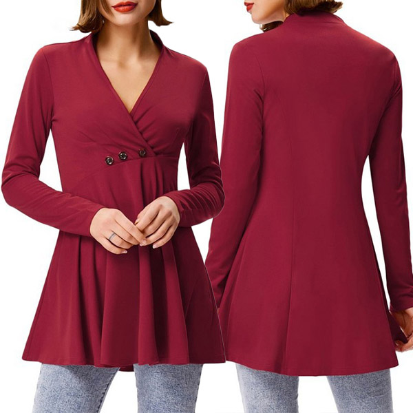 with long sleeve,v-neck and soft fabric,this piece can offer you a comfortable day. The front buttons