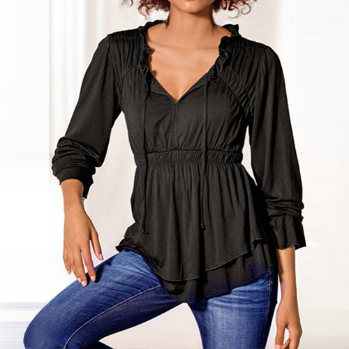 Solid color style,with long sleeve,v-neck and flouncing cuff design,sweet and chic. Perfect