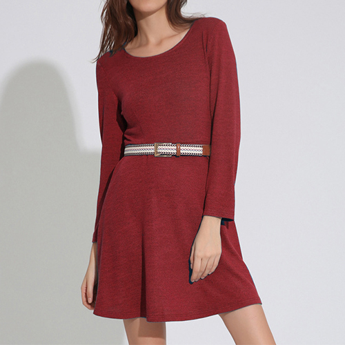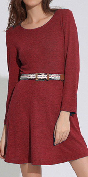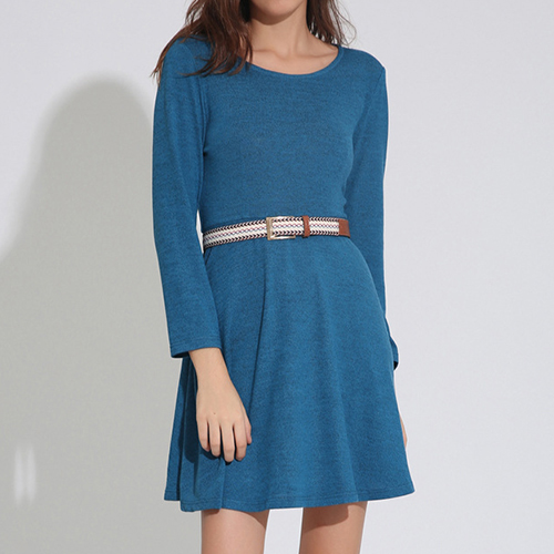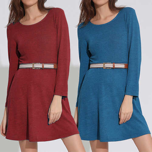 The dress is styled with solid color and long sleeve patterns, simple but stylish. The waist strap