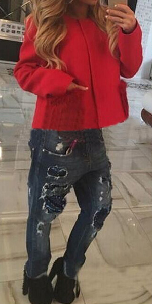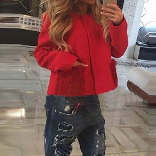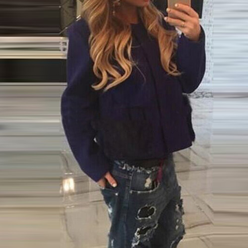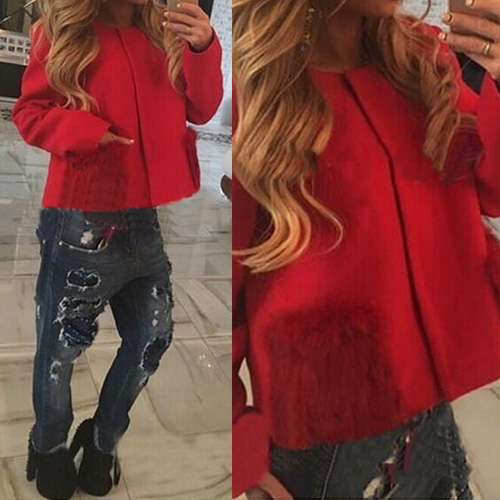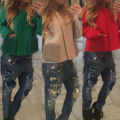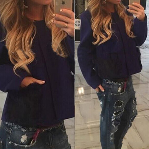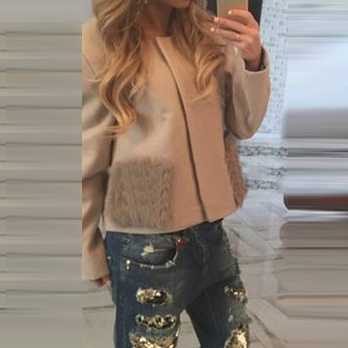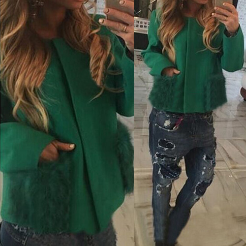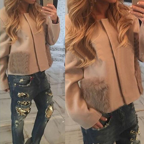 a stylish look. And its faux fur spliced pockets design makes it look more chic.
