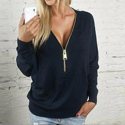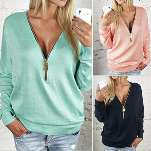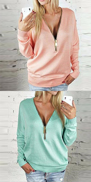 is its zipper neckline deisgn,which can make it as a deep v-neck item. Attracted by it? Then add one to