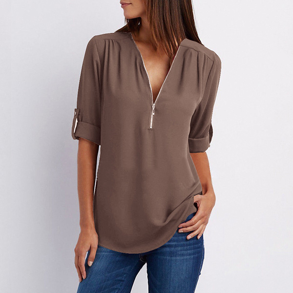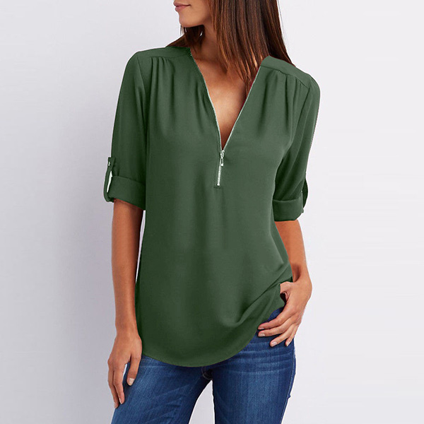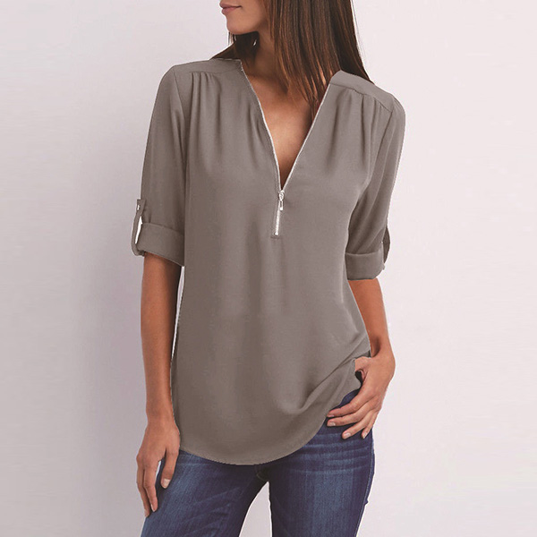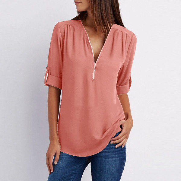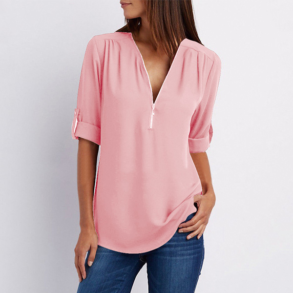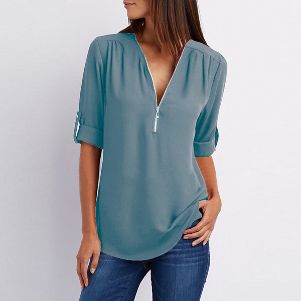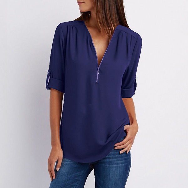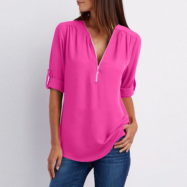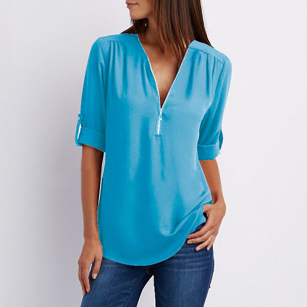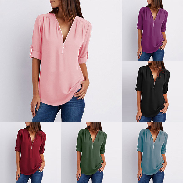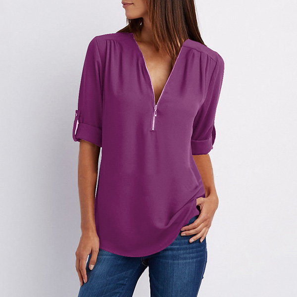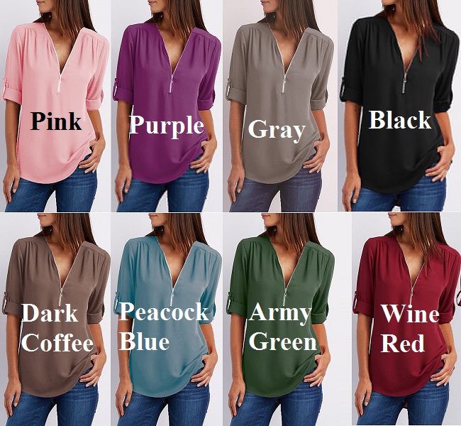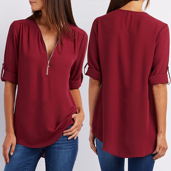 Solid color style,the zipper v-neck design makes this piece look so stylish and chic,meanwhile,its soft,