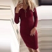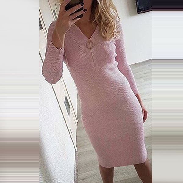 Solid color style,designed with long sleeve,v-neck and a fit silhouette,this dress can enhance your female appeal.