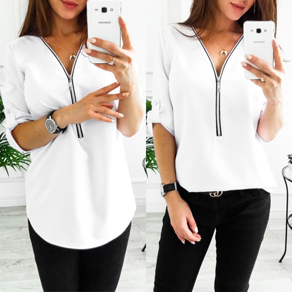 with long sleeve and cozy fabric,this top is sure to give you a comfortable day. And the zipper v-neck design can