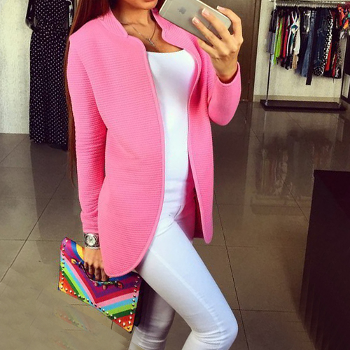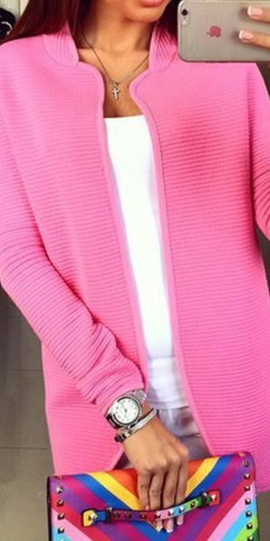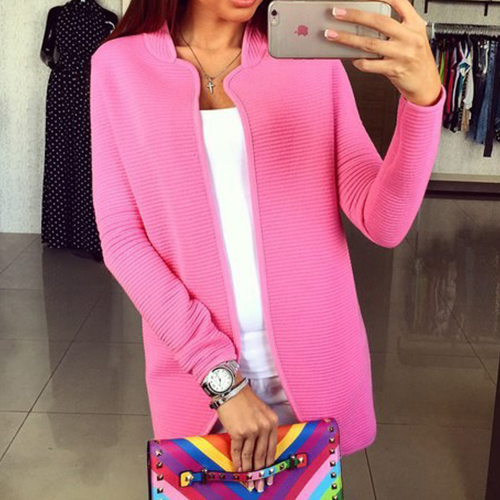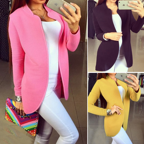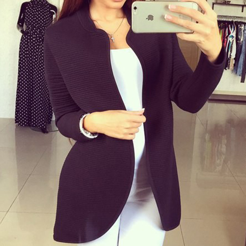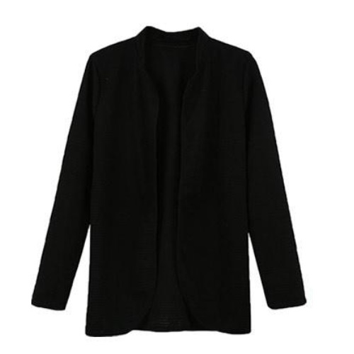 This coat is designed with long sleeves and it is solid color while it is also styled with a open-front