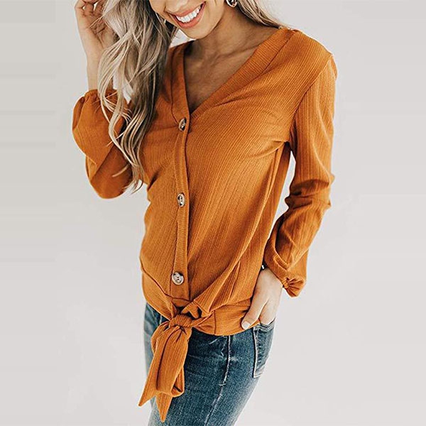 the v-neck,front buttons and lace-up hem design will make this piece look more attractive.