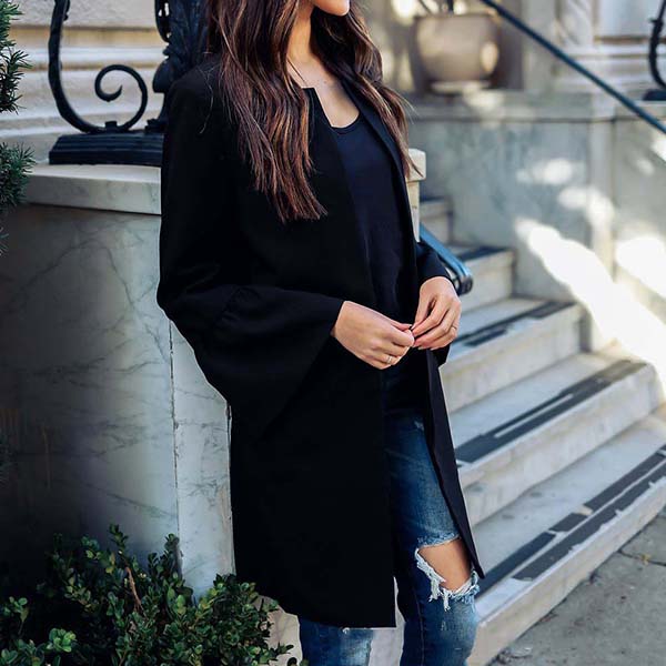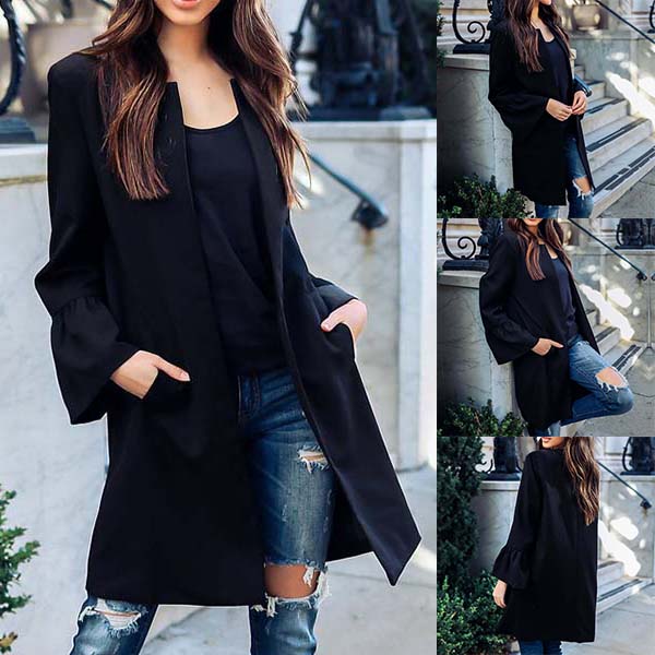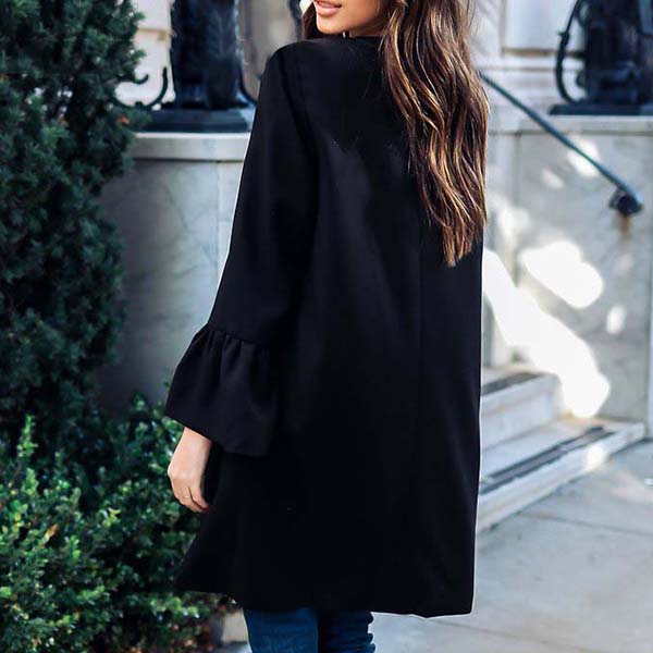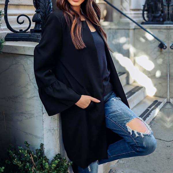 It is wise for you to slip into this coat if you feel a little cold. Boasts a classic black tone,finished with lotus sleeve
