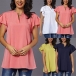 a solid color,the lotus sleeve and v-neck design make this piece look so attractive,while its soft fabric and