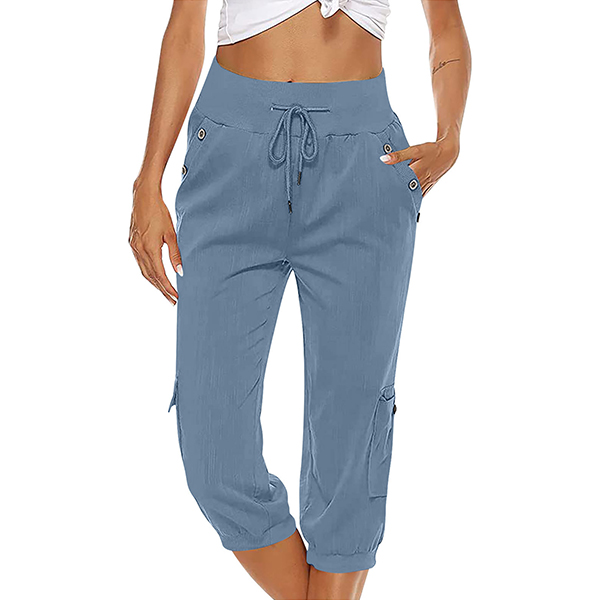 Fashion Solid Color Low-waist Side-button Harlan Pants